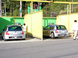 コーナーじゃないと2台枠におさまらないってことでコーナーを狙って激写したつもりが・・・ほとんど手ぶれ(涙)腕ではなく舗装が悪い!で、一番まともに写っていたのが、曲がったガードレールの・・・次回に期待を。
